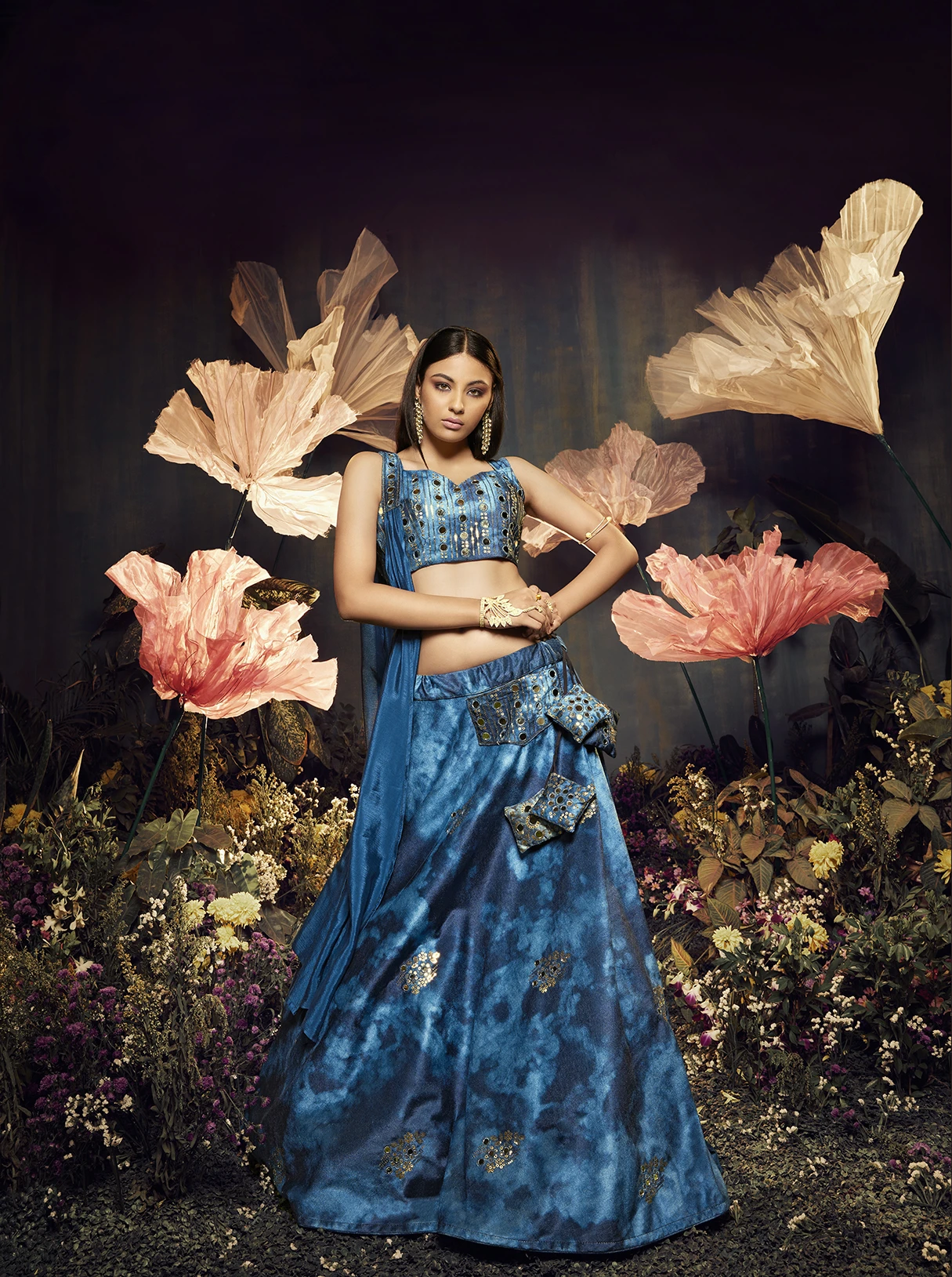 Lehenga Work:Sibburi Print with Sequence and Mirror Work