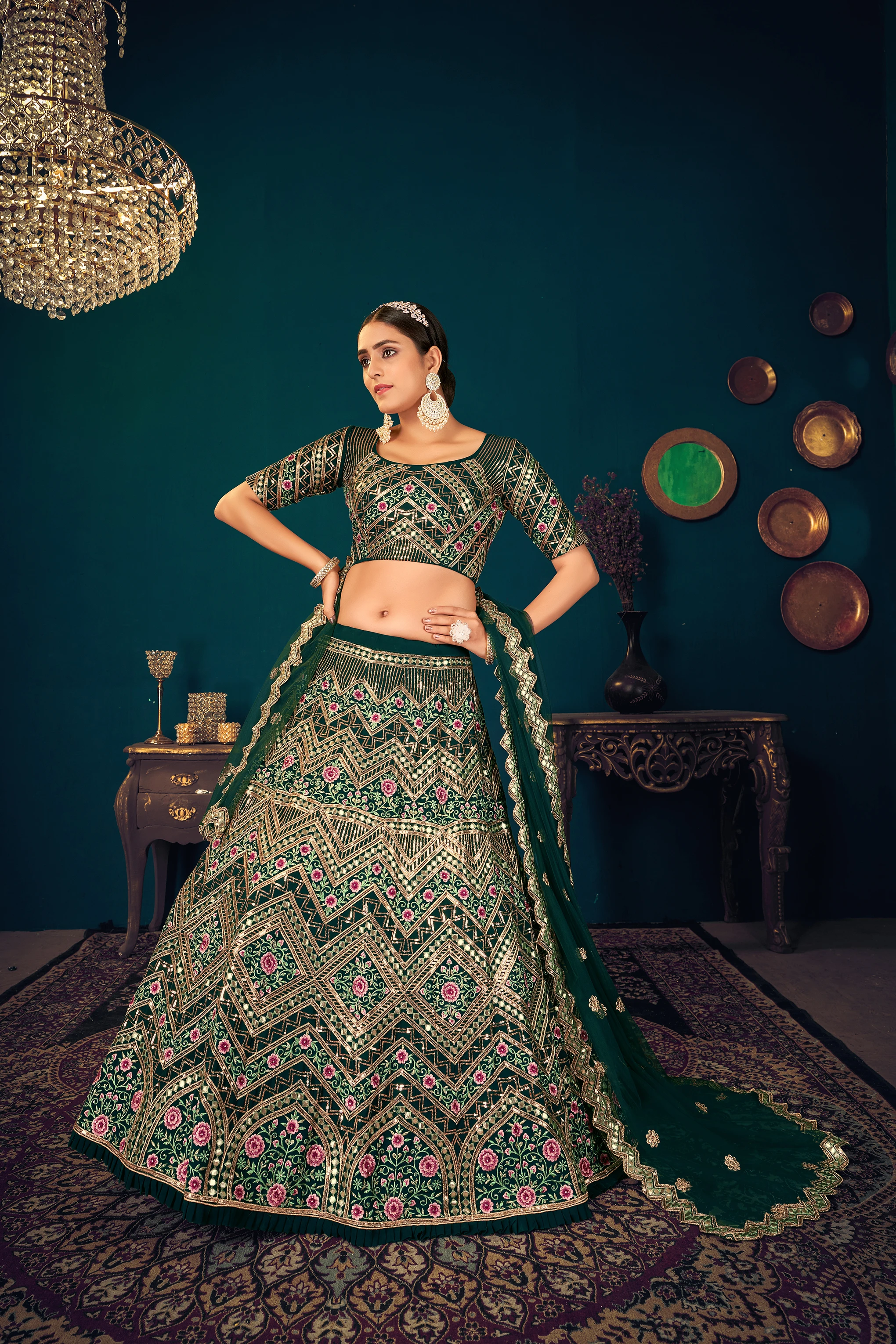 Lehenga Work:Multi Thread, Sequence, Gota Patti Embroidered Work