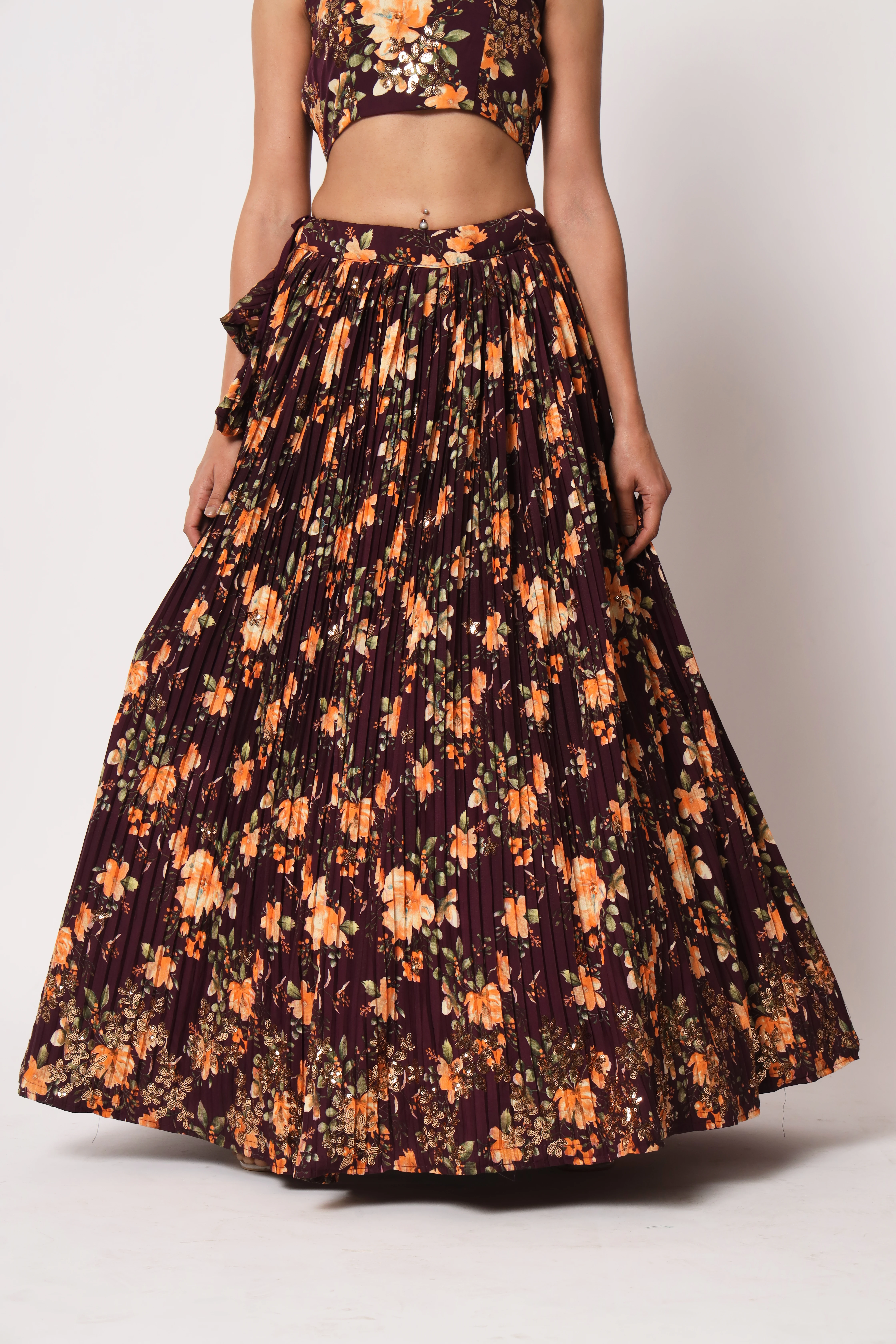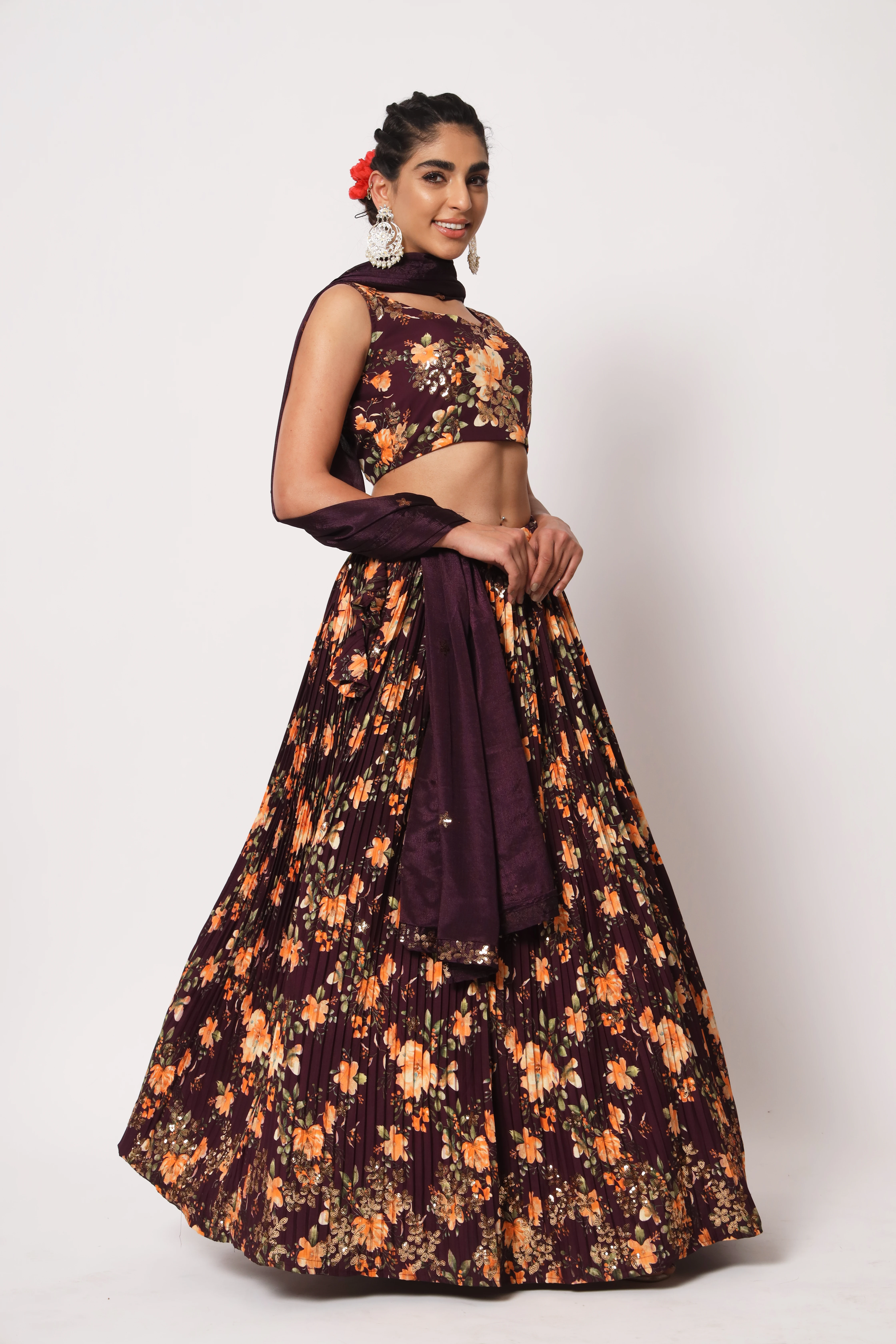 Lehenga Work:Crush with Print and Sequence Embroidered Work