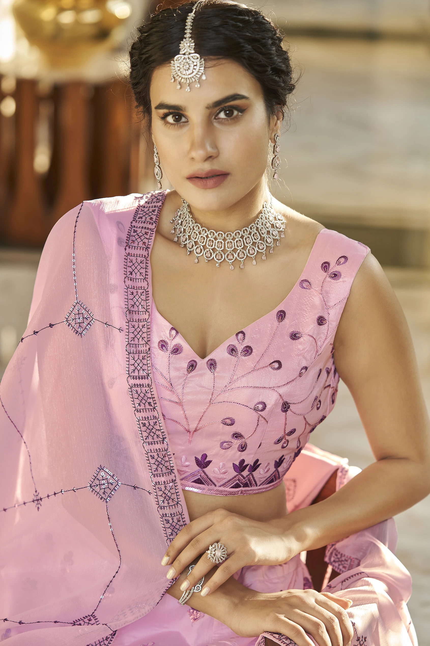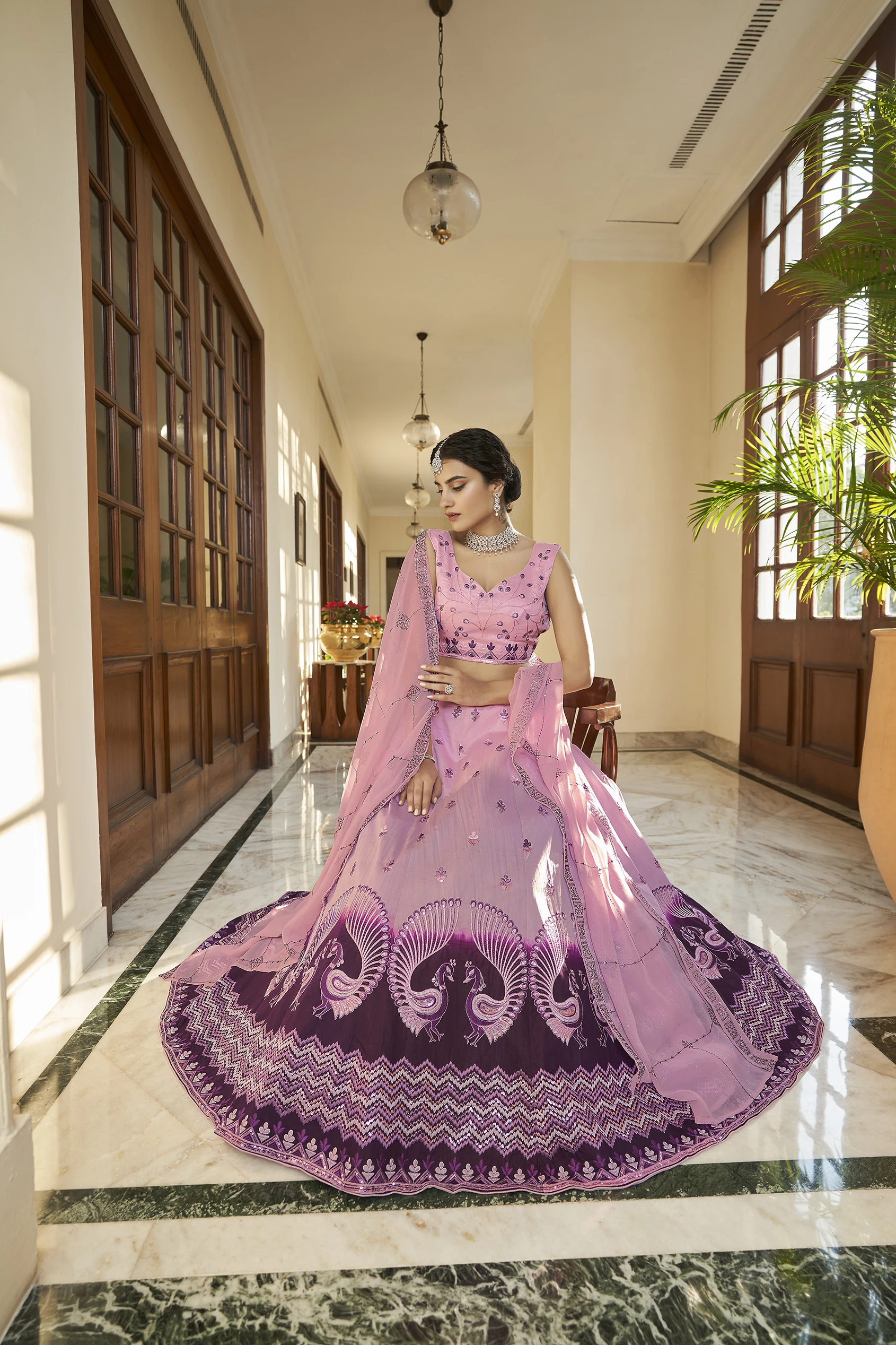 Lehenga Work:Thread with Sequence with Embroidered with Mirror Work