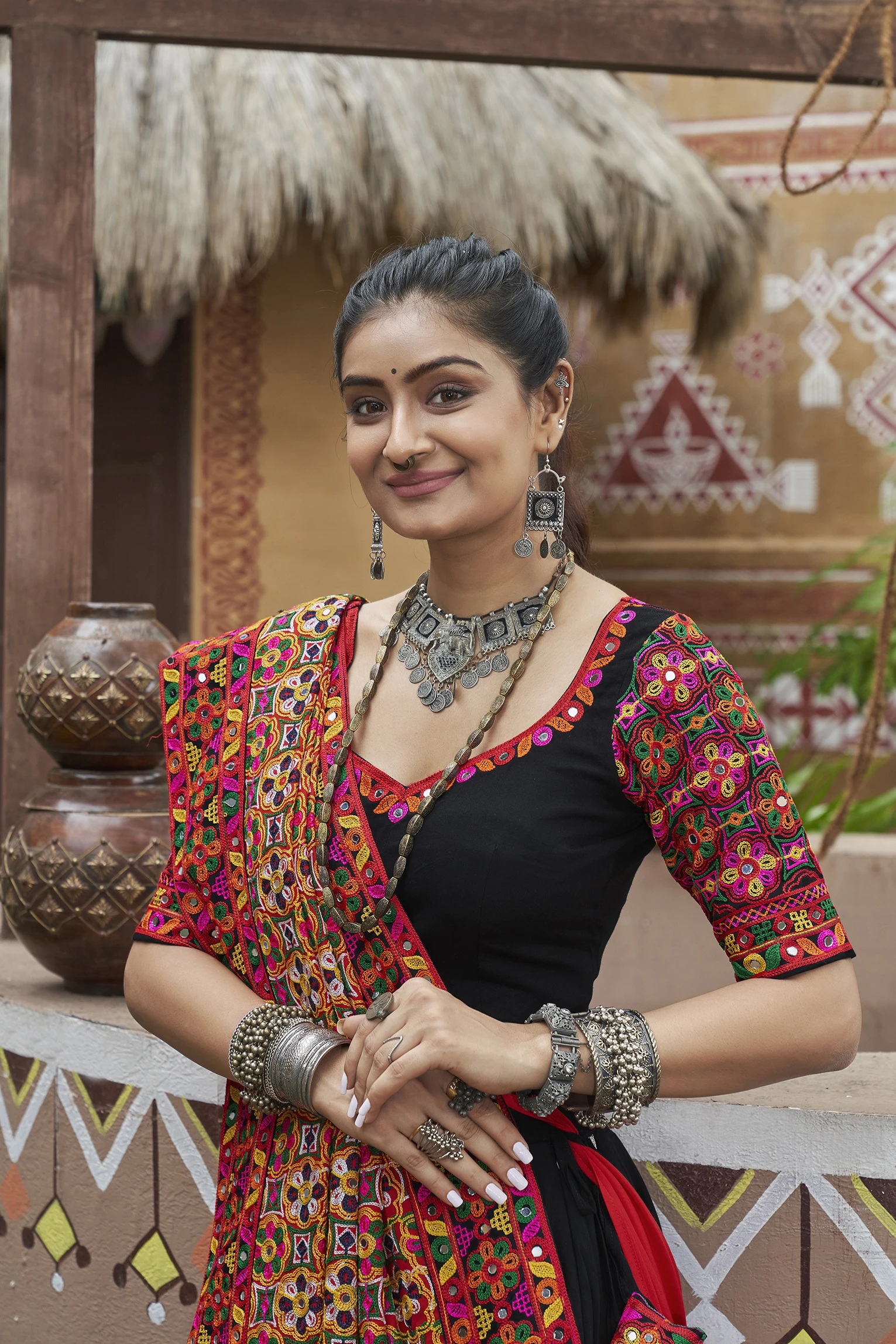 Choli Work:Embroidery work with all over mirror