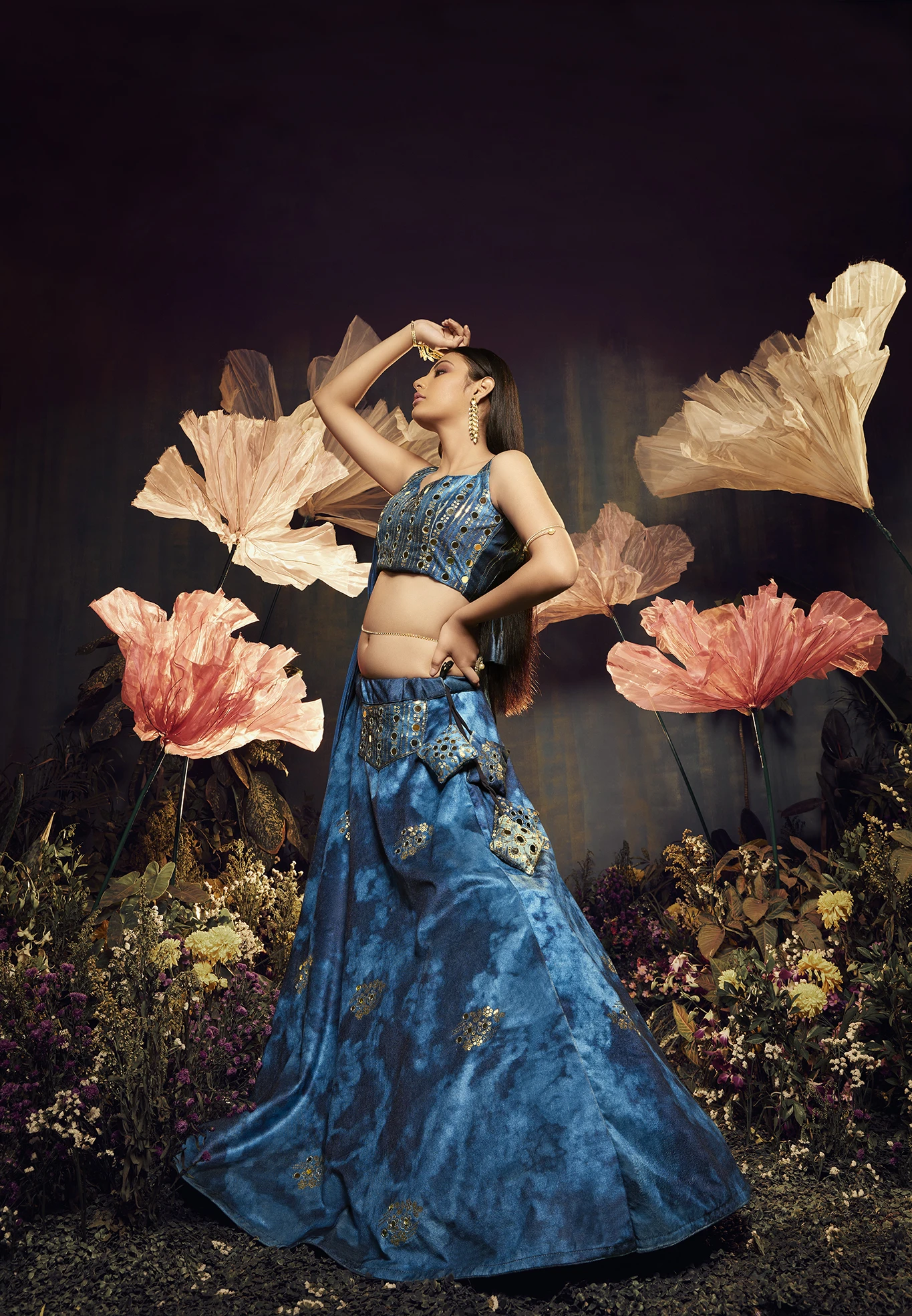 Lehenga Work:Sibburi Print with Sequence and Mirror Work