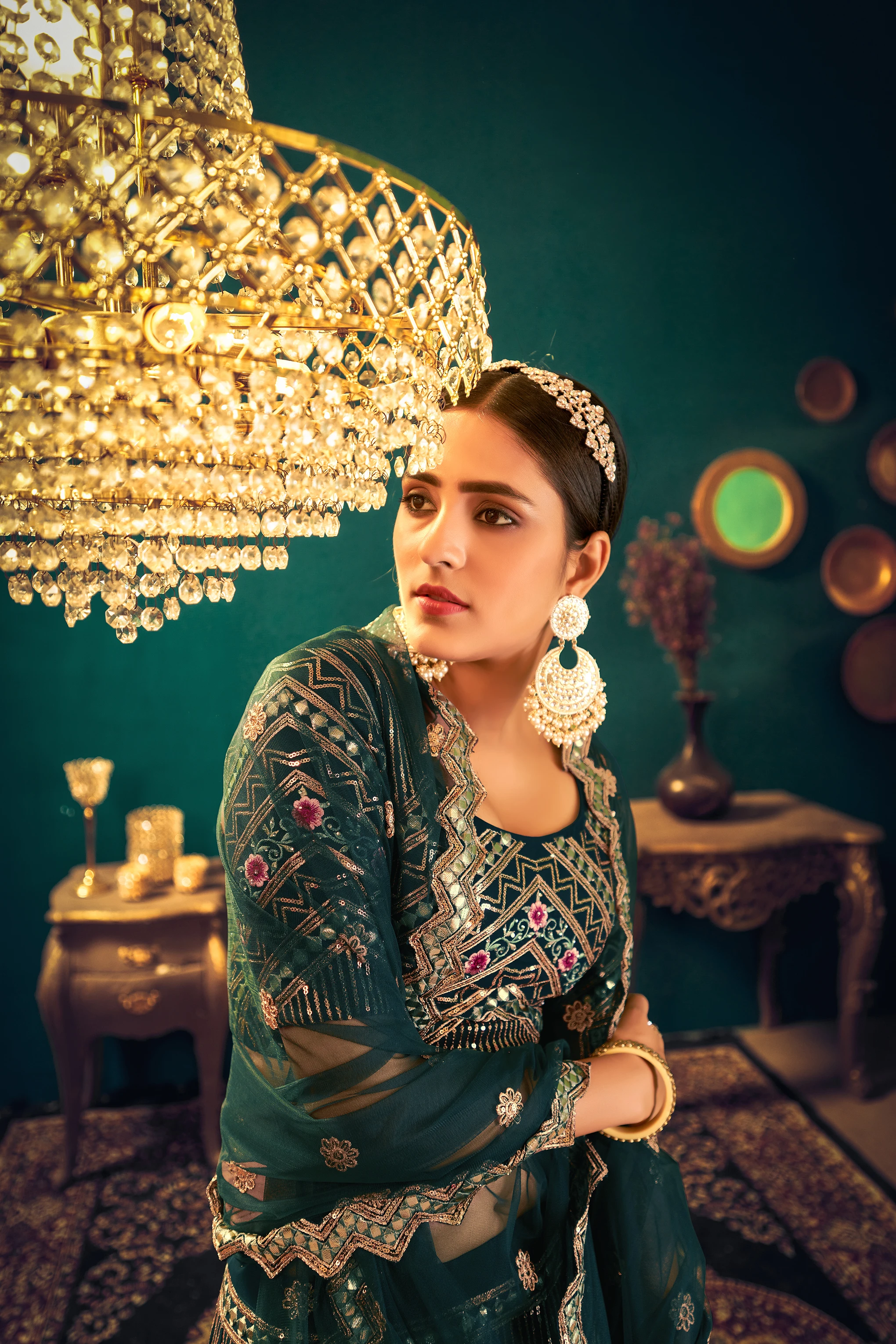 Lehenga Work:Multi Thread, Sequence, Gota Patti Embroidered Work