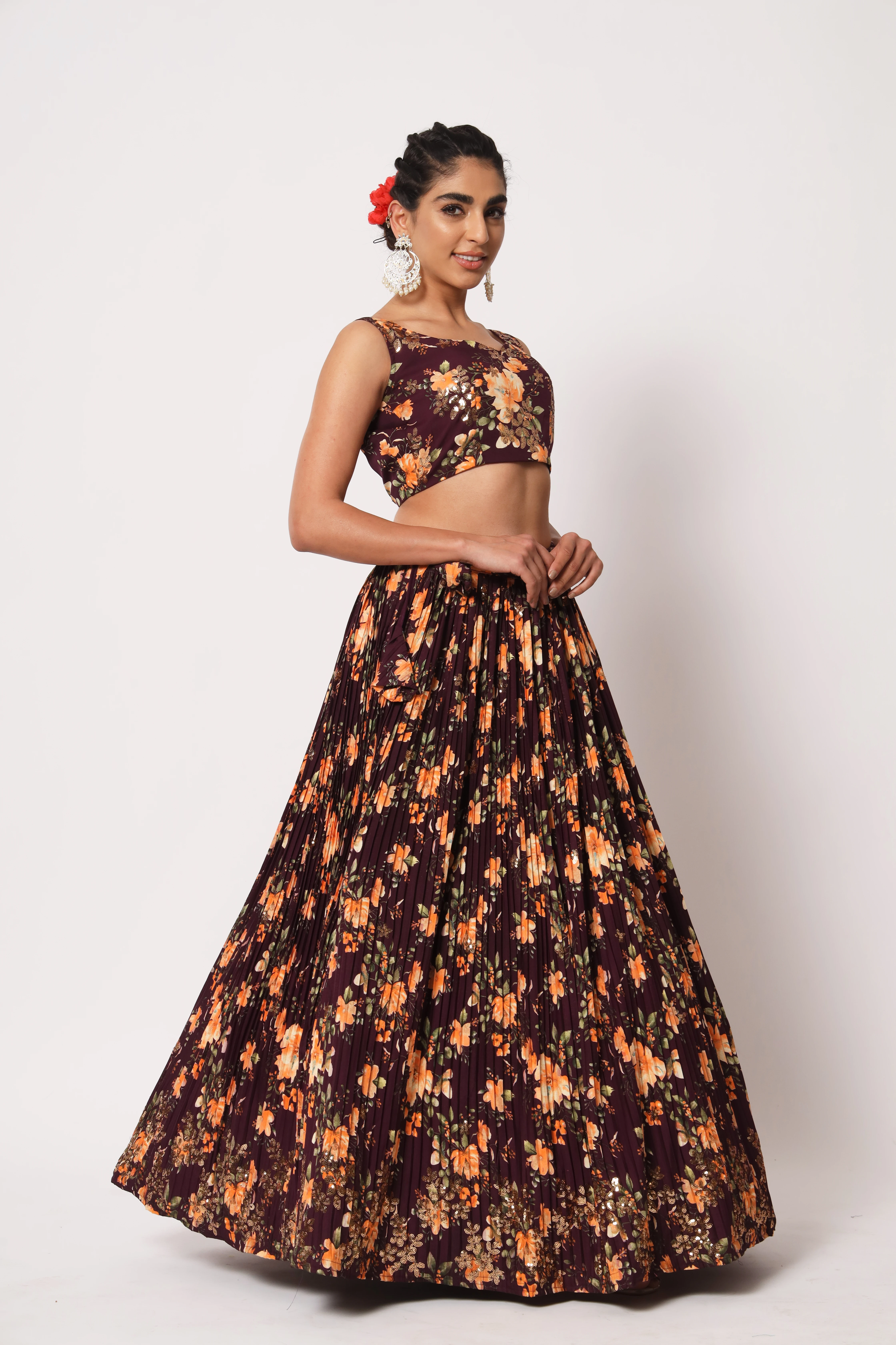 Lehenga Work:Crush with Print and Sequence Embroidered Work
