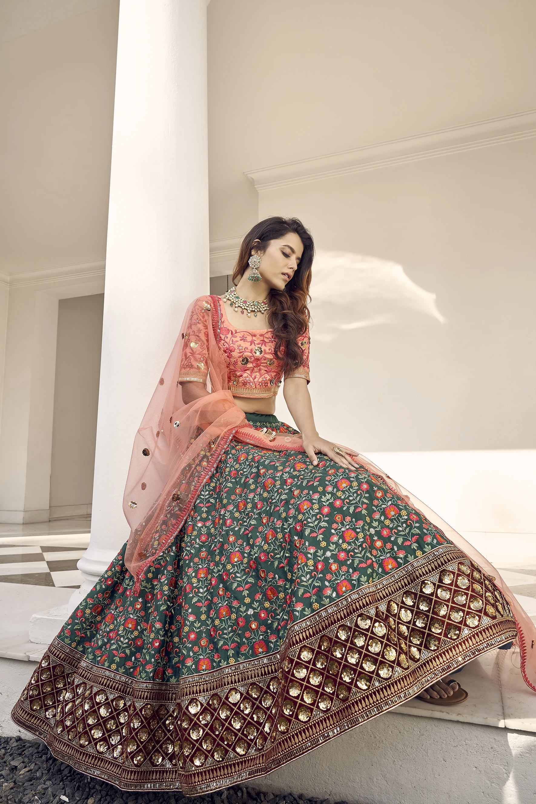 Lehenga Work:Thread with Sequence Embroidered Work
