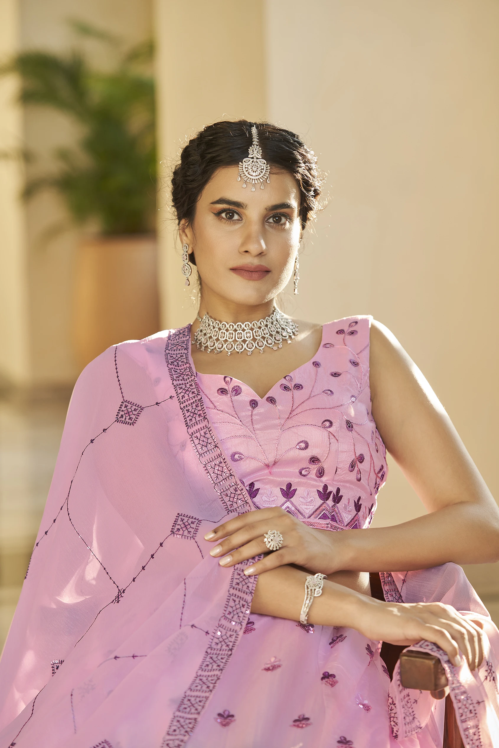 Lehenga Work:Thread with Sequence with Embroidered with Mirror Work