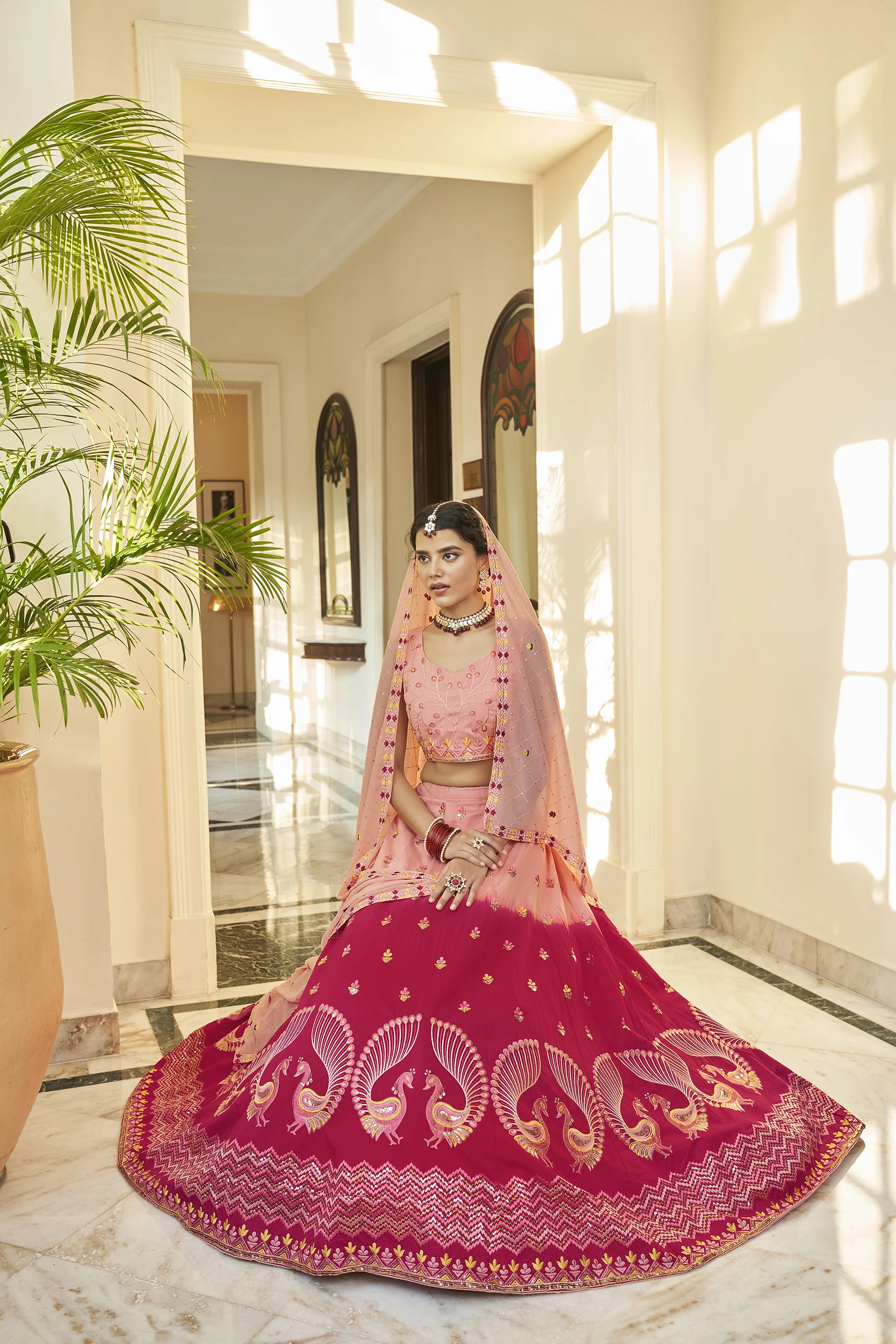 Lehenga Work:Thread with Sequence with Embroidered with Mirror Work