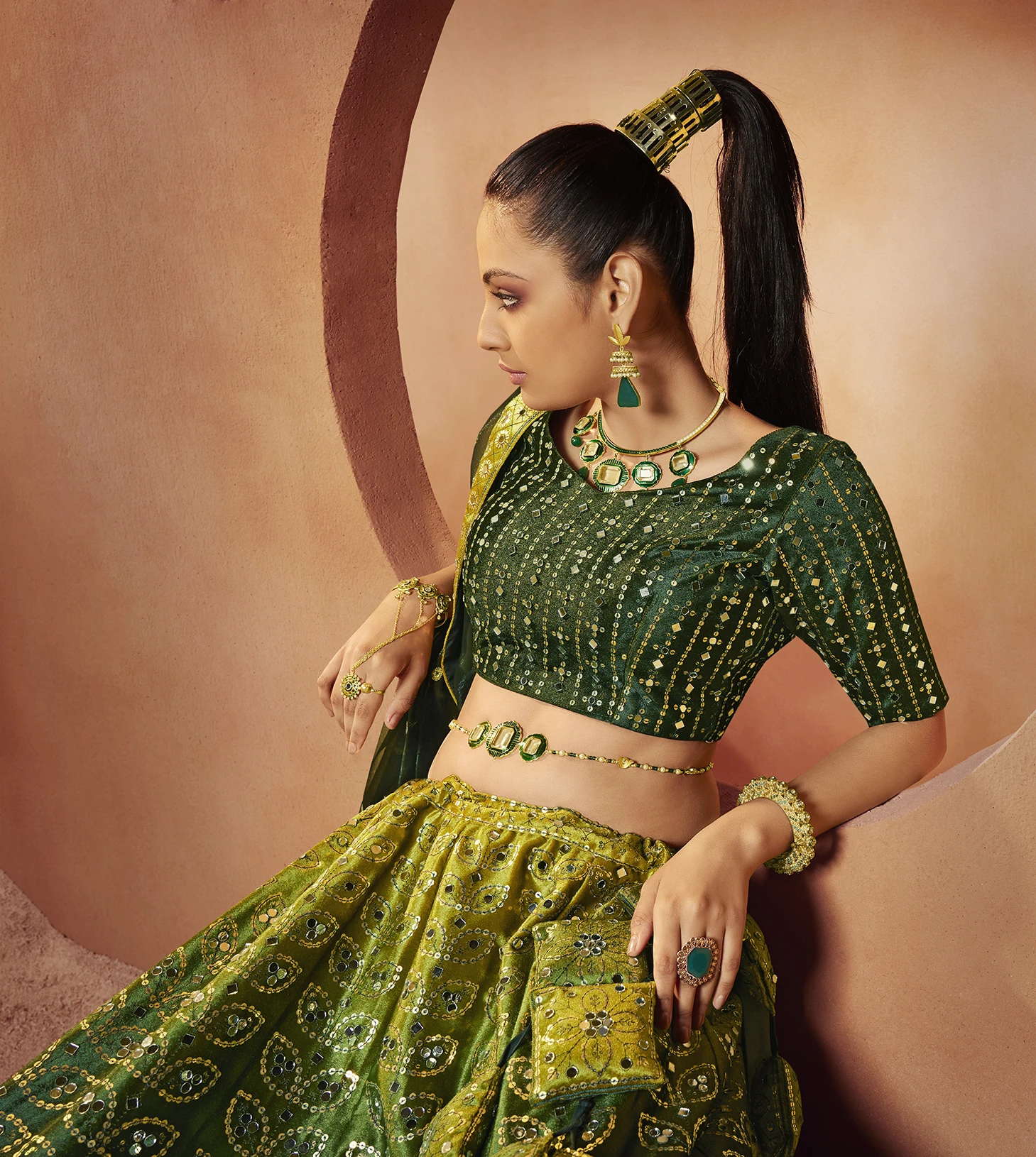 Lehenga Work:sequence Embroidered with All Over Mirror Work